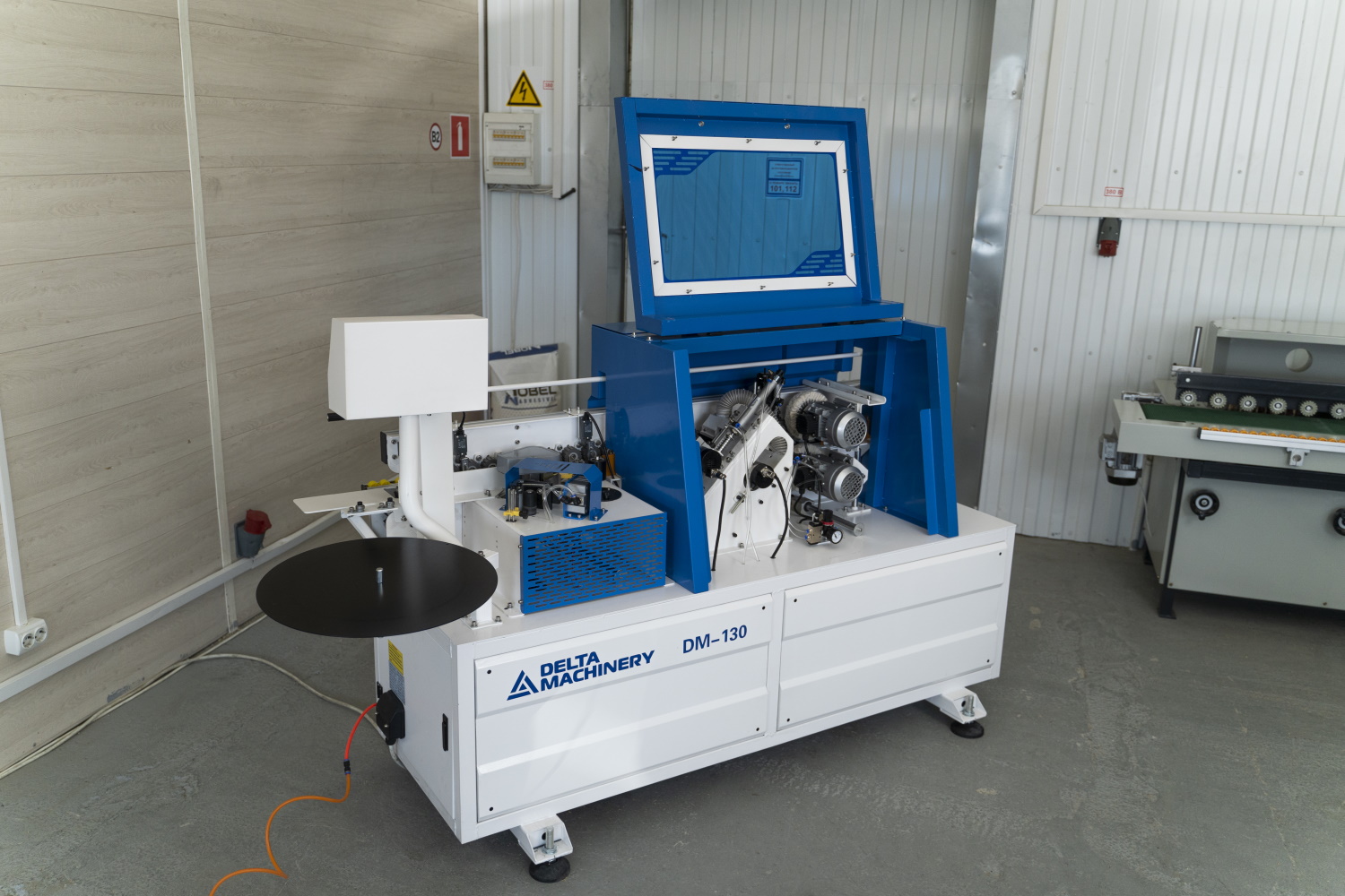 Предназначен для облицовывания прямолинейных мебельных щитов и заготовок натуральным полосовым и синтетическим рулонным материалом. А также для снятия свесов (фрезерования) уже приклеенного кромочного материала одновременно как с нижней, так и с верхней части детали.