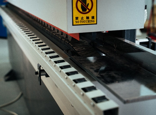 Траверса имеет ручную настройку толщины детали с индикатором в зоне подачи заготовок.
