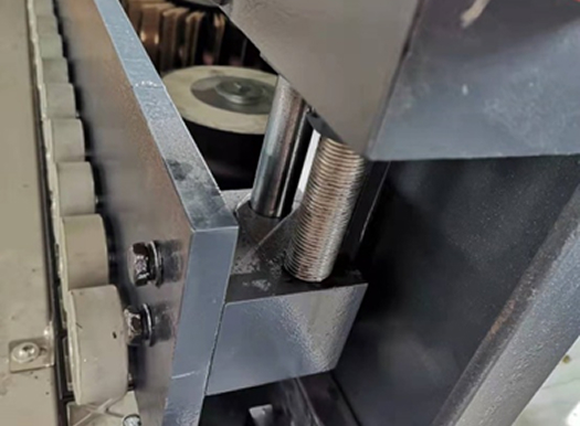 Для повышения точности позиционирования прижимной траверсы на станке установлена винтовая передача подъема\опускания и цилиндрические направляющие.