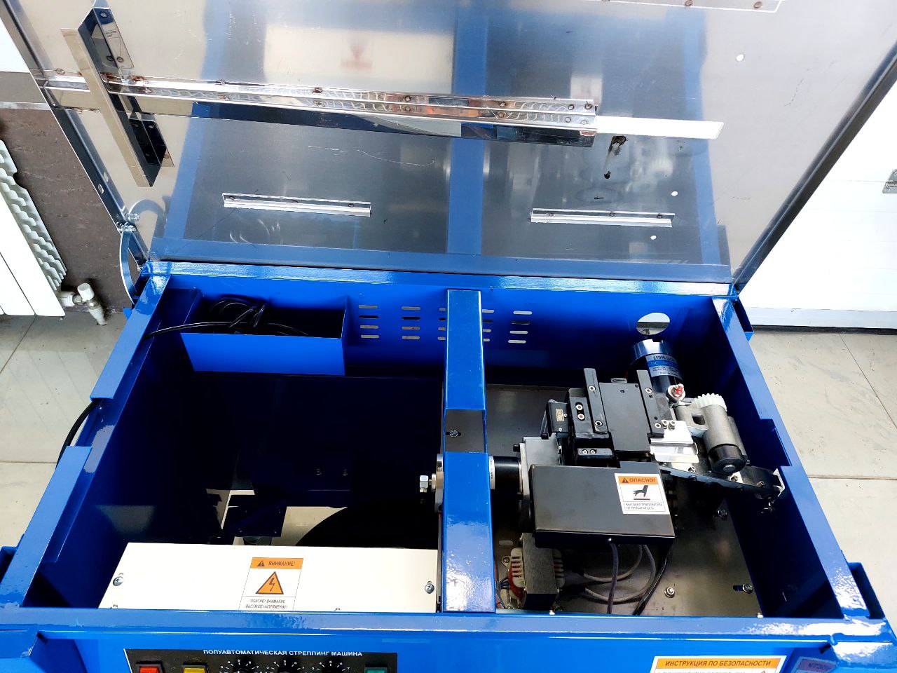 1. Стреппинг машина автоматически выбрасывает ленту на рабочий стол на заданную длину;