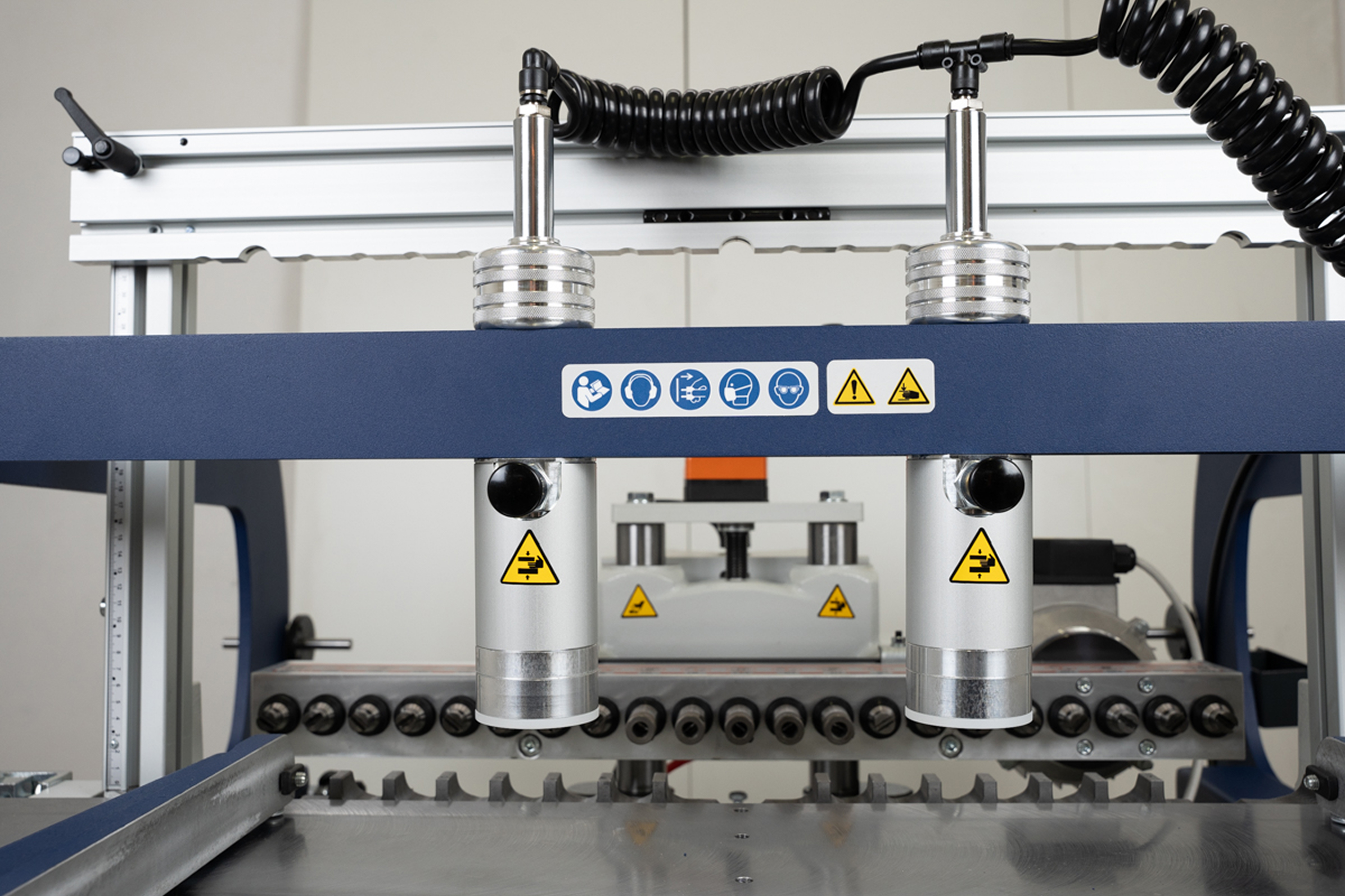 Пневматические прижимы для быстрого фиксирования заготовки исключают необходимость ручной регулировки.